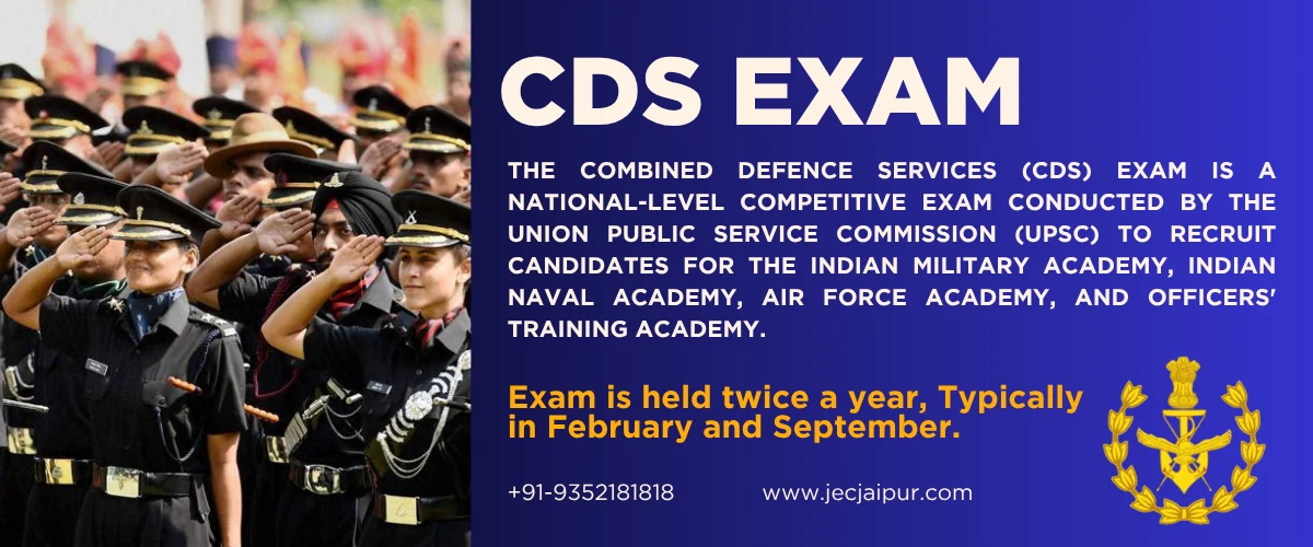 At JEC Coaching, we guide aspirants in every step of their CDS Exam Preparation. At JEC, we proudly offer the Top CDS Coaching in Jaipur. JEC Academy provides structured mentoring, strong practice, and SSB interview preparation. All this will help you crack the CDS Exam confidently.
