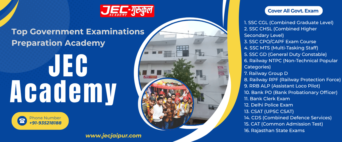 At JEC Academy, we offer overall coaching for all major Government Exams that you are preparing for. It doesn’t matter if it’s SSC, Railway, Banking, or State Exams. On this page, we’ve outlined each exam below. We’ve also added in detail about how JEC Academy in Jaipur helps you with the right tools and strategies to succeed.